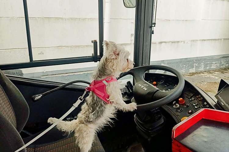 Ich bin Elsa, das herzliche Maskottchen und leidenschaftliche Bushündin. Mit eineinhalb Jahren begleite ich mein Frauchen voller Freude im Bus – ob sie fährt oder unseren Gästen aus unserer schönen Hansestadt erzählt. Freundlich wedelnd begrüße ich liebe Gäste, die mit mir kuscheln möchten. Und kommt mal ein Artgenosse an Bord, bin ich ein wirklich ganz besonders glückliches Hündchen.